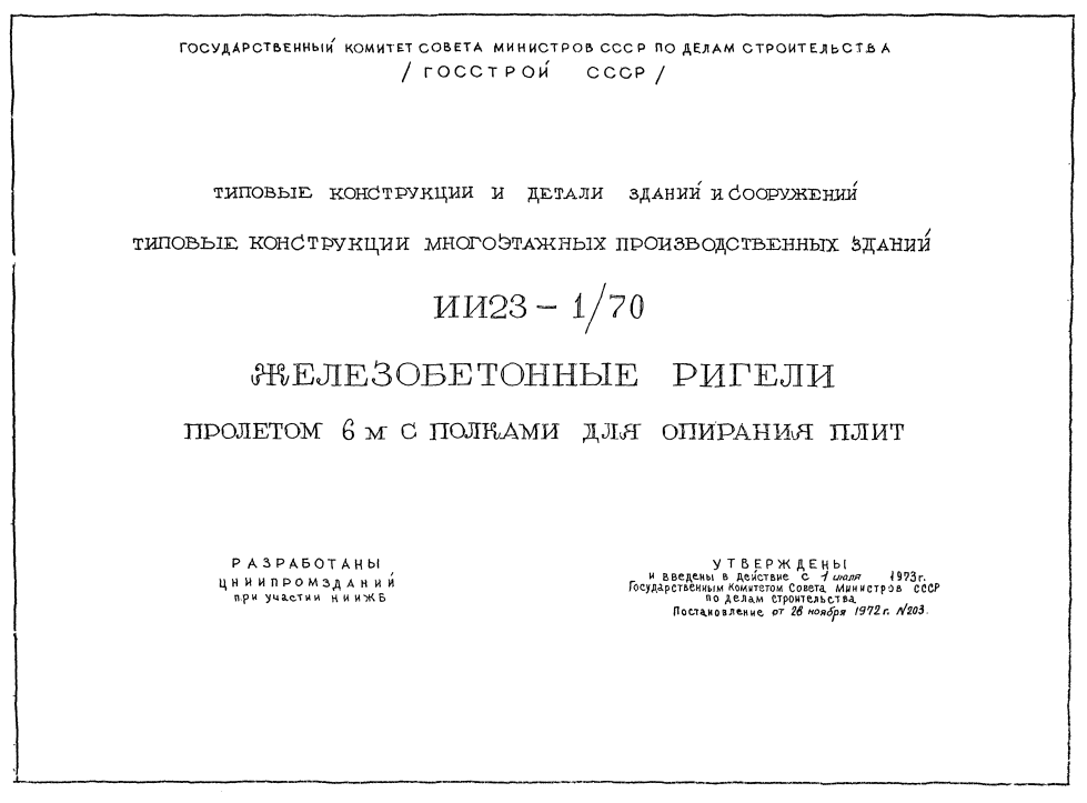 Серия ИИ 23-1/70. Железобетонные ригели пролетом 6 м с полками для опирания плит