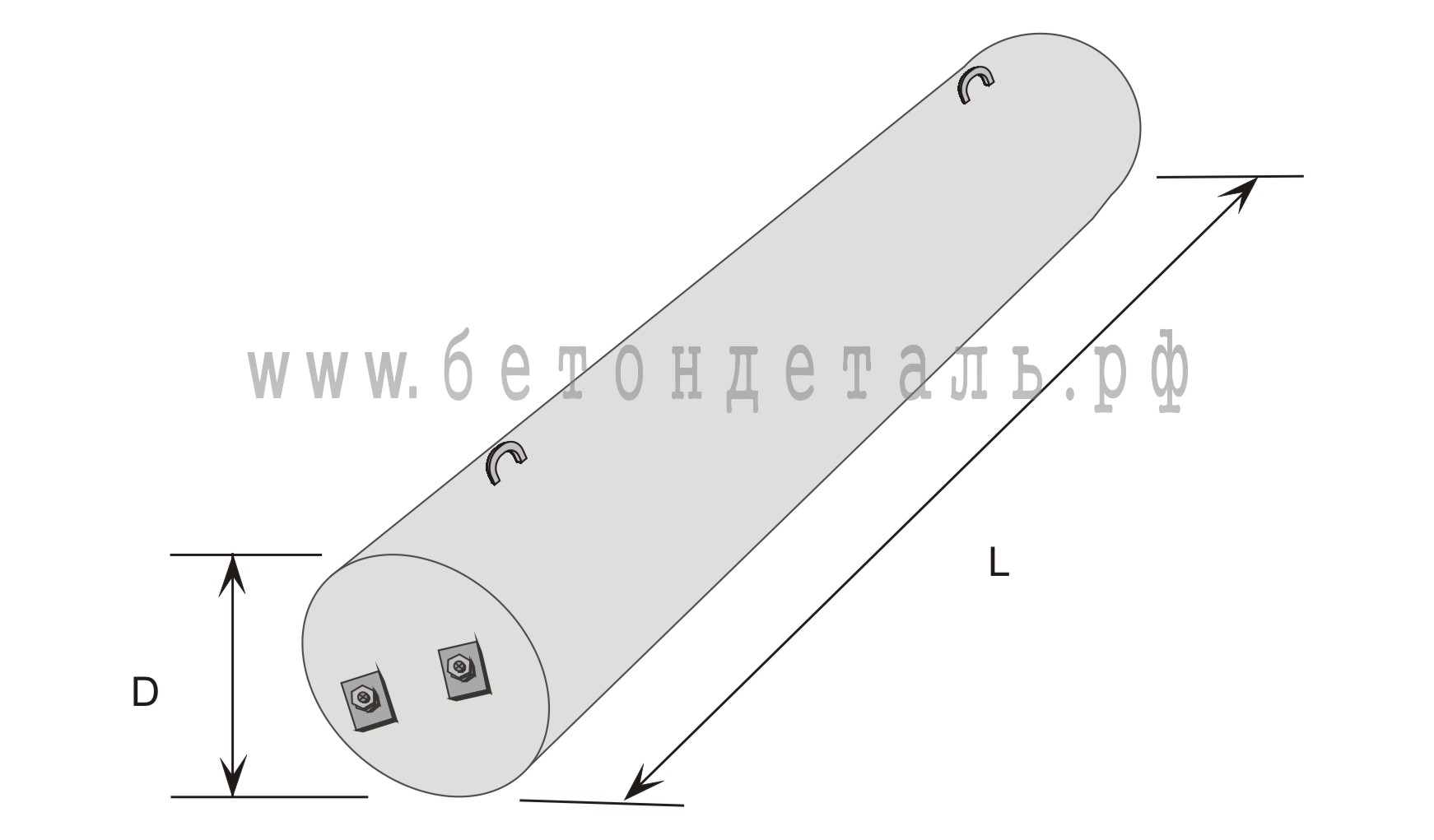 Фундамент цилиндрический ФТ 34-102 предназначен для установки вертикальных опор ОРУ 35-220 кВ. Фундамент имеет цилиндрическую форму. На одной его стороне находится закладная часть, которая соединяется с опорой при помощи фланцевого соединения с использованием шпилек и болтов.