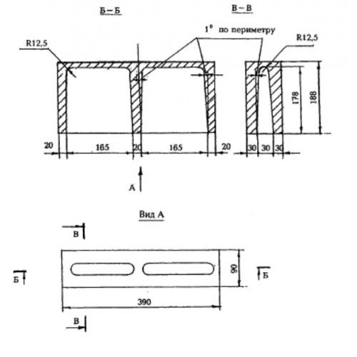 Камни для кладки стен КСР-ПР-ПС 39. Унифицированные изделия, имеющие прямоугольную форму с рядом конструктивных особенностей в виде выступов, углублений и отверстий.
